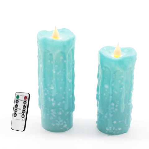 Vera cera immersa a mano candele a colonna a LED a batteria, primitive Country tremolante luci di fiamma decorazioni, verde acqua